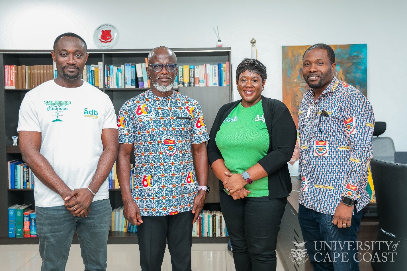 Officials from the Agricultural Development Bank (ADB) Ghana have paid a courtesy visit to the Registrar of the University of Cape Coast (UCC), Gideon Enoch Abbeyquaye, Esq, to discuss ways of improving banking services for students and staff of the University.